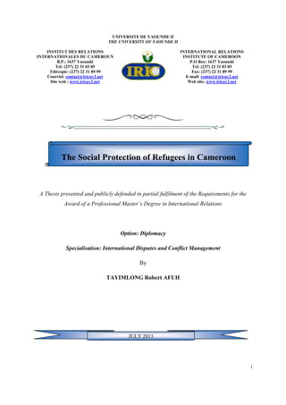 The Social Protection Of Refugees In Cameroon